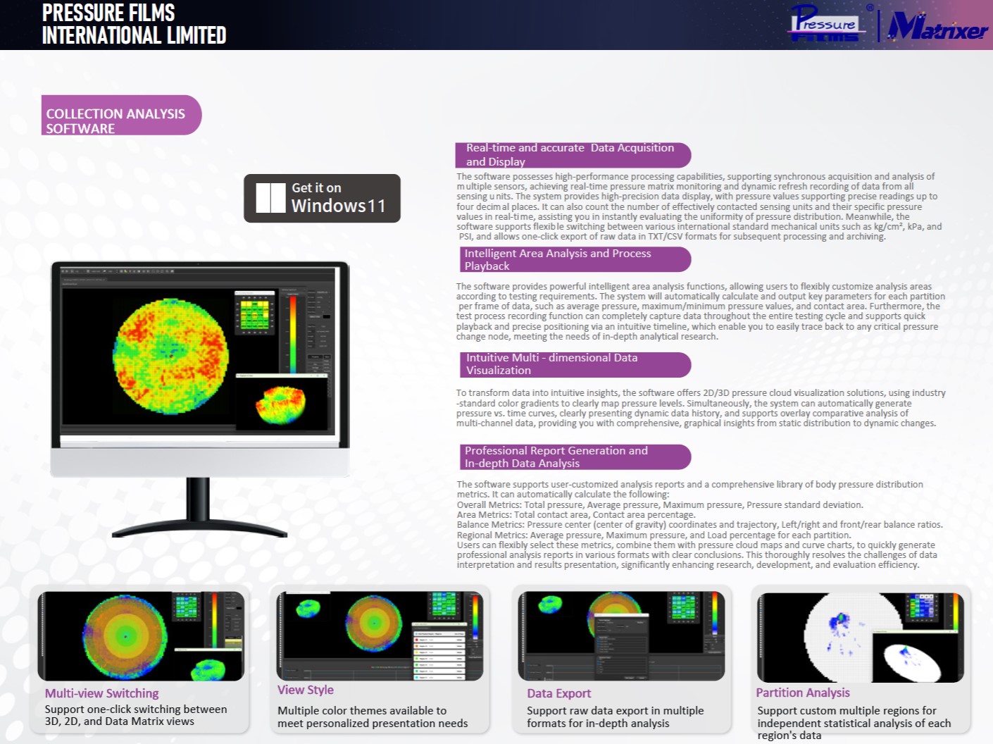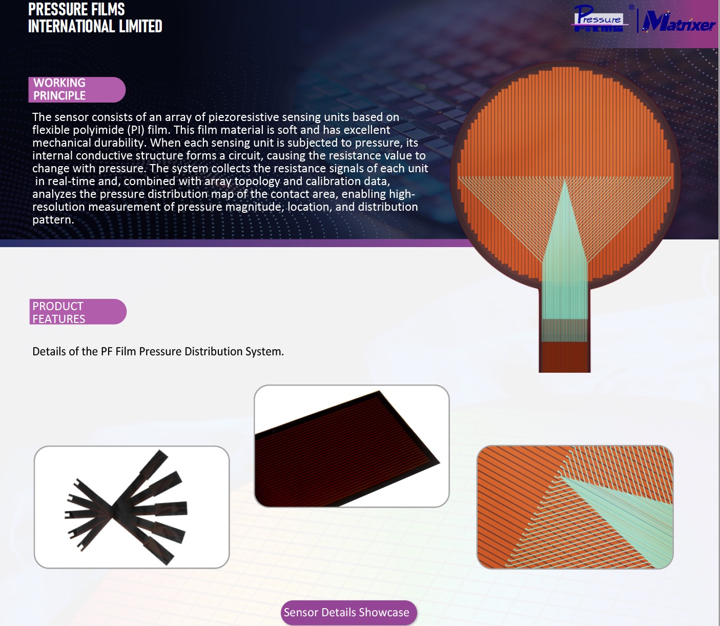 PF壓力薄膜系統是一種壓力測量系統,可以通過電子皮膚檢測壓力。其超薄電子表皮可以即時準確地顯示兩個接觸面之間的壓力變化,以2D和3D圖形的形式直接輸出到顯示介面。